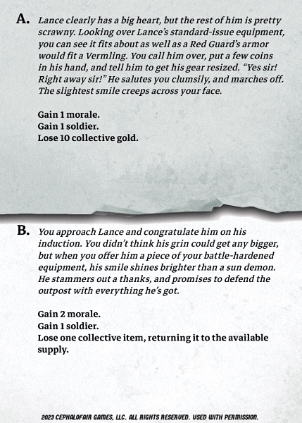 -- Gain 1 morale. Gain 1 soldier. Lose 10 collective gold (paid by B'Sháni)