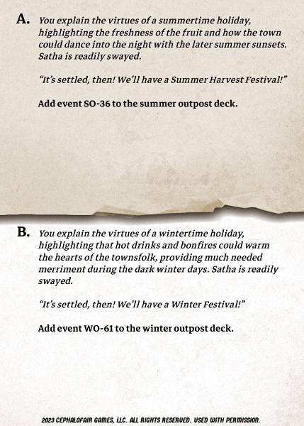 - B'Sháni: Retire (five scenarios with boat, sled or climbing gear requirement)
