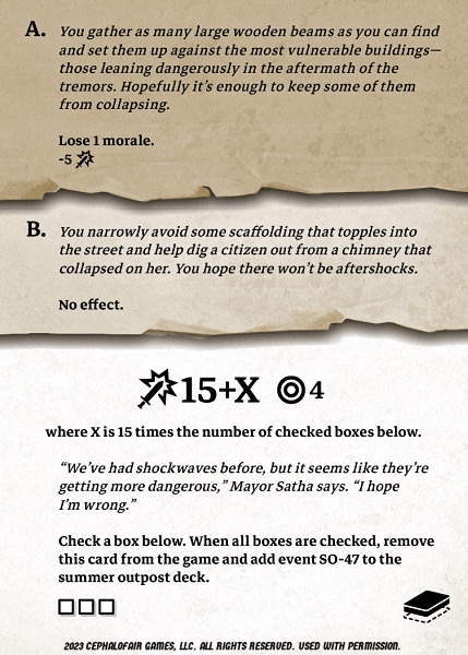 | Lumber | −3 | Upgrade Trading Post | No |