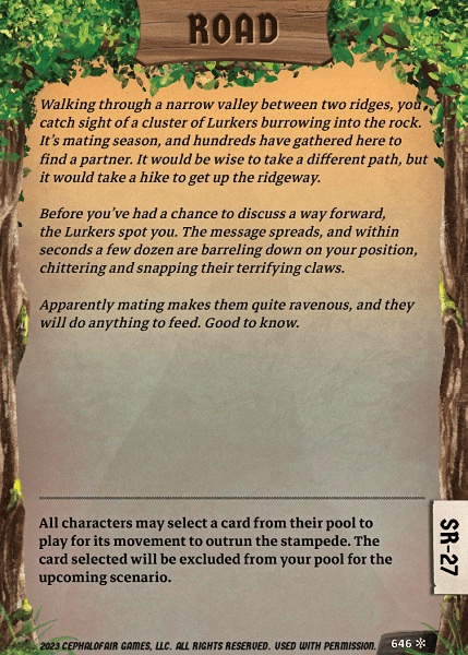 | 1499 | Glittering Distraction | Whenever there are three or more revealed loot tokens on the map at the end of any round, all characters gain . |