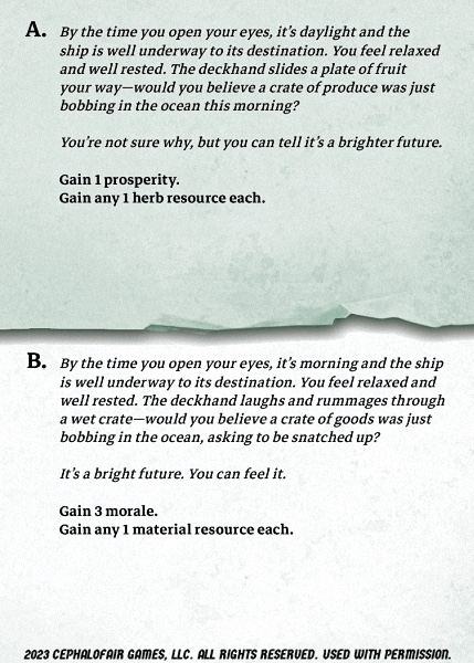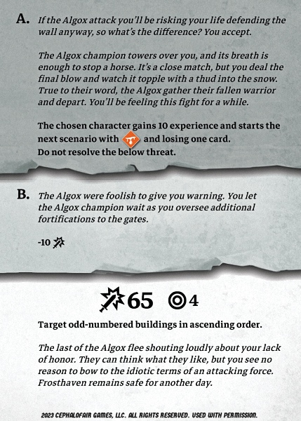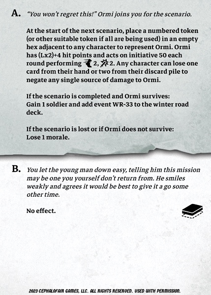 -- Sanda: 10 XP, start next scenario with and lose one card